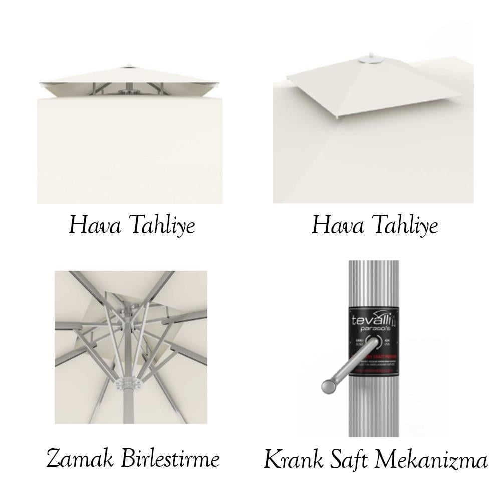 • Kullanım Alanları : Bahçe, Teras, Balkon, Otel, Havuz, Plaj, Çay Bahçesi vb. gibi aşırı rüzgar almayan tüm alanlarda kullanıma uygundur.